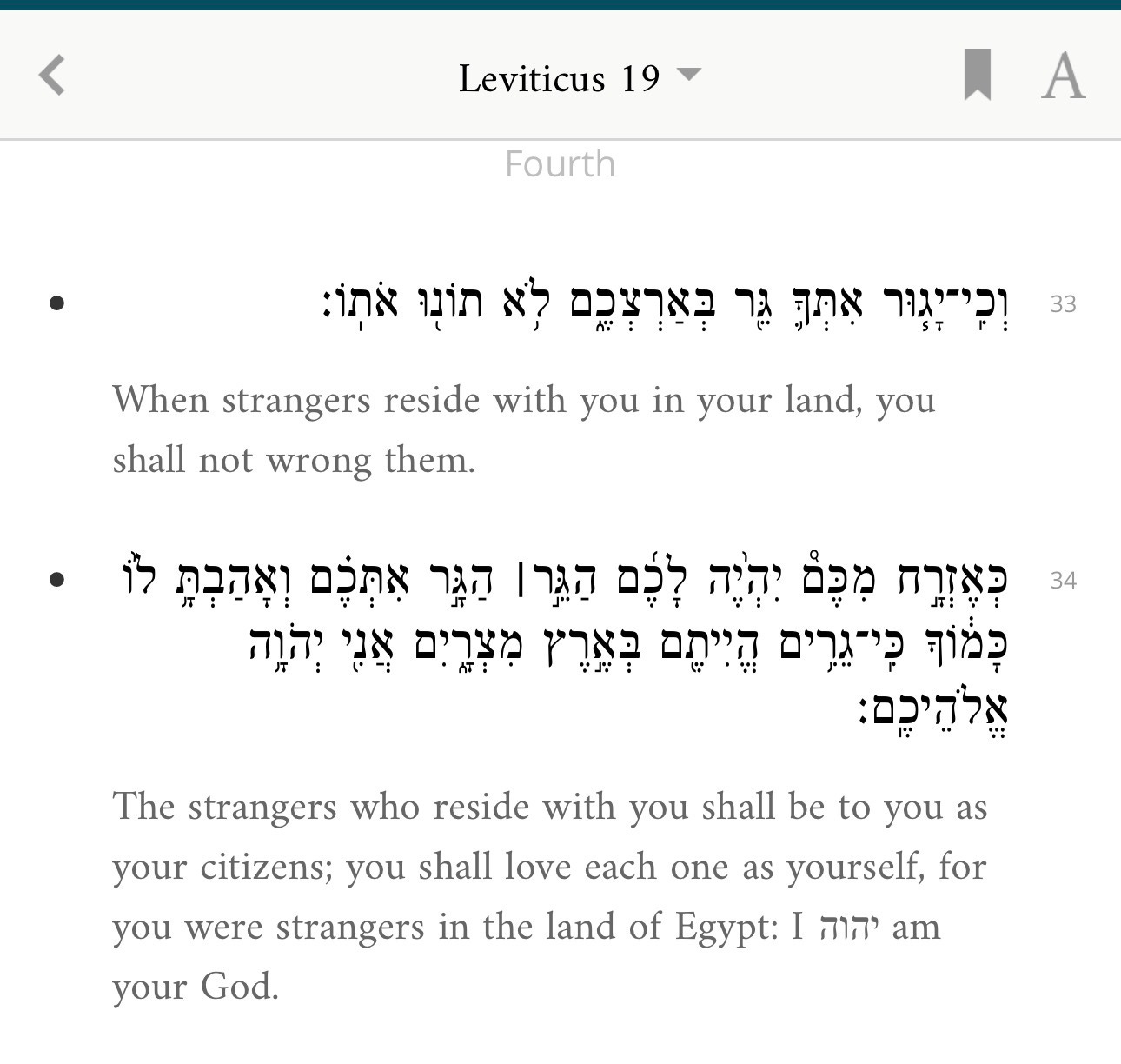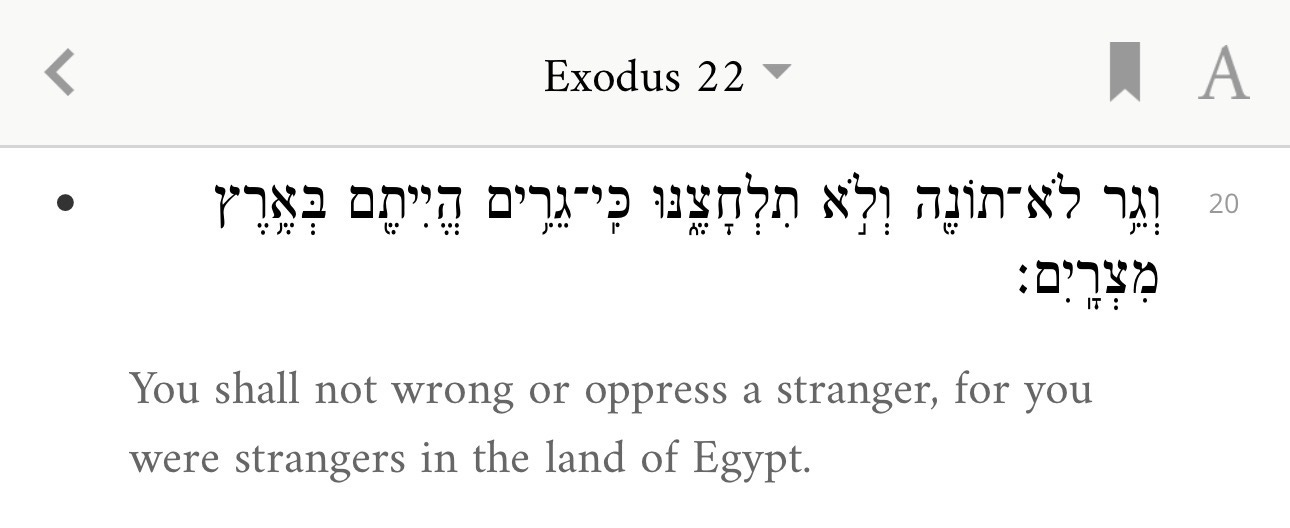 Exodus 22 and Leviticus 19 each utter the command to treat the גֵּר stranger with kindness, you shall not wrong or oppress a stranger … strangers who reside with you shall be to you as citizens; you shall love each one as yourself, for you were strangers in the land of Egypt. The word ger describes a newcomer, a temporary dweller, a sojourner. Much like us.
