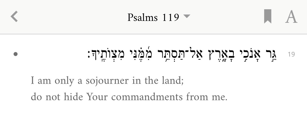 There’s that word, again: גֵּר alien, sojourner, stranger. Remember, nothing belongs to us in this Creation. G-d created us to live in His Creation. We live as guests in this life. This life is but a sojourn, we are temporary dwellers. Did we forget that? “I live as an alien in the land, do not hide your commandments from me,” writes the Psalmist in Psalm 119:19.