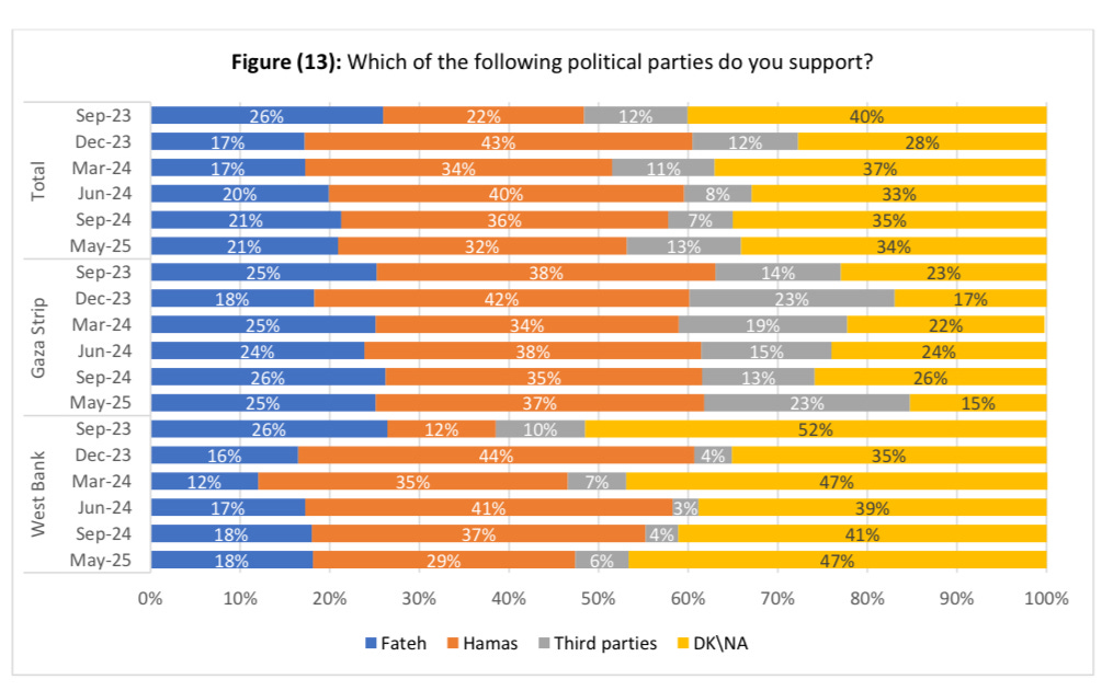 Note: My source for this article is a survey conducted in May 2025, itās the most recent survey conducted by the Palestinian Centre for Policy and Survey Research.