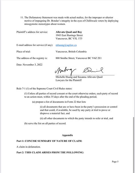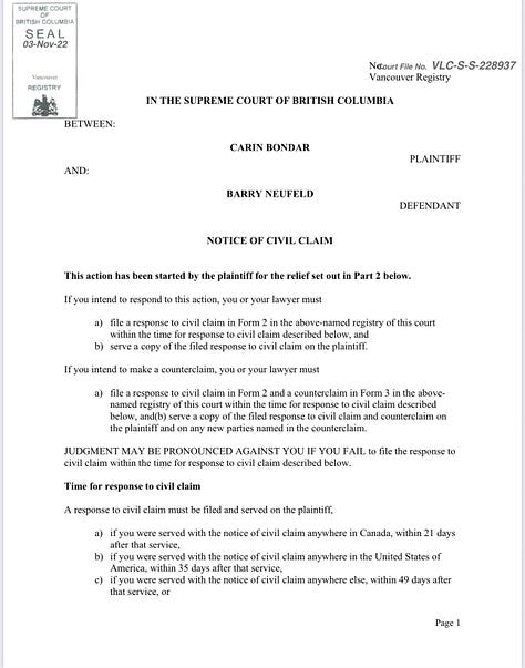 Reader, take a look at this excerpt from Bondarâs Notice of Civil Claim, below. What do you think about what you read here?