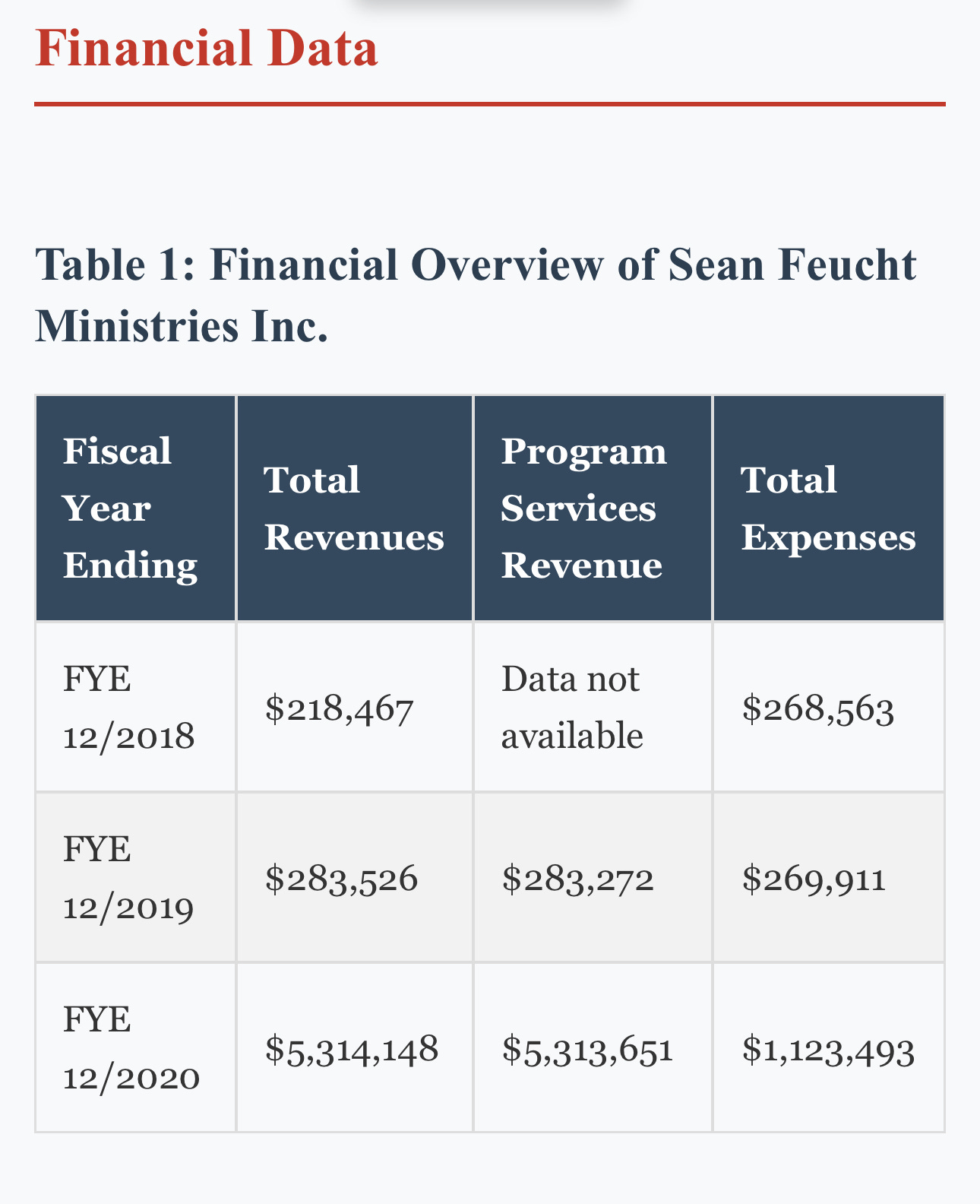 Feucht Ministries Inc revenue exploded from $228,467 in 2018 to $5,314,148 in 2020. Feucht has 9 or 10 homes across the United States, including one worth over $3 million in California and one in DC worth $900,000. Added to that, his theology looks somewhat sketchy. Not to mention Feucht has a pattern and demonstrated track record of spiritual and psychological abuse.
