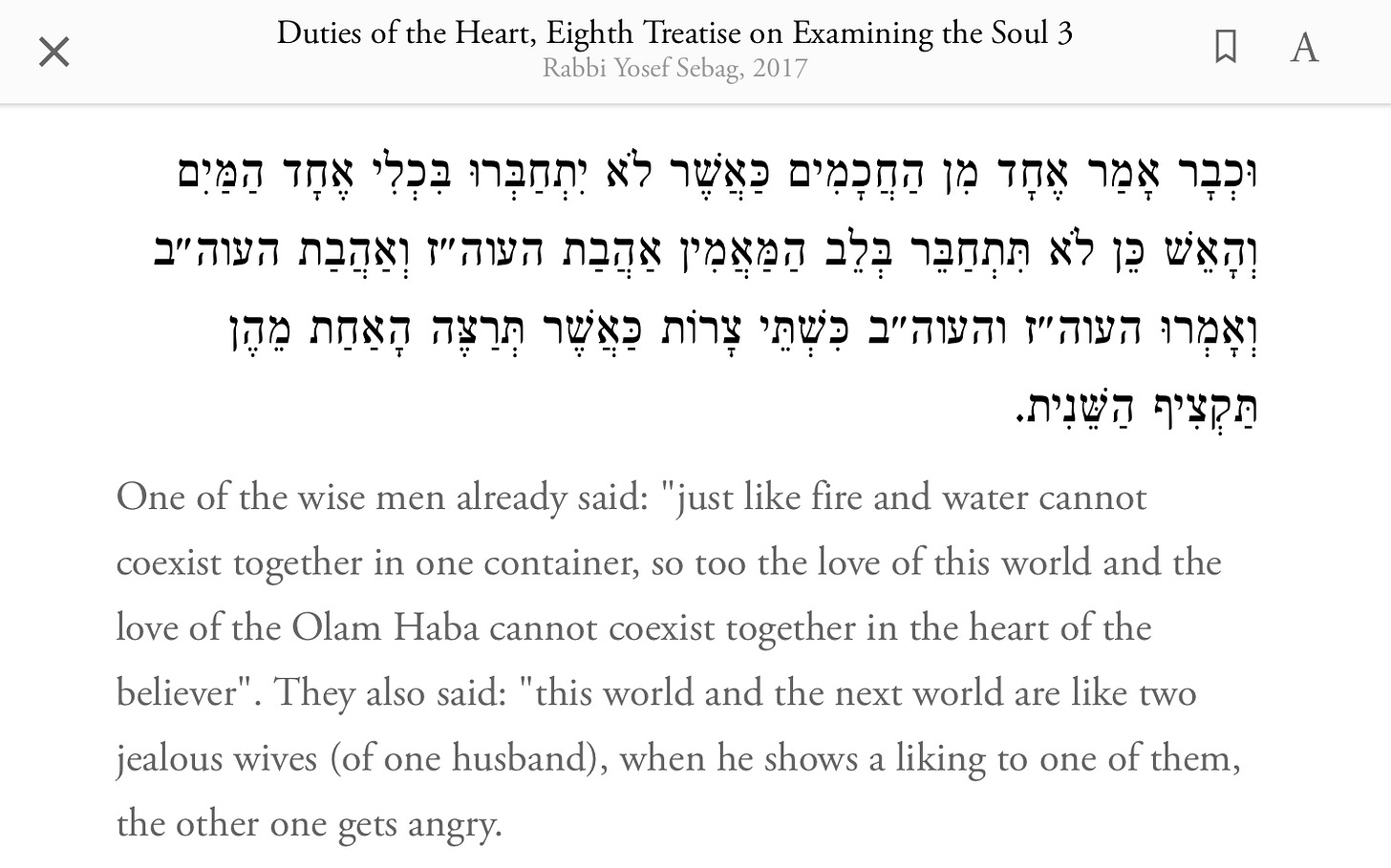 Do we invest the same energy and zeal and devotion to following Jesus as we do to our worldly endeavours and our vying for power, position, status, glory, authority? That’s the important question to take away from Pastor Heechan’s sermon. Rabbi Bachya ibn Paquda makes the analogy of the worldly and the spiritual vying for our attention within our heart as two jealous wives. That’s a provocative analogy. Reflect on that for yourself. How do these two realms and desires balance themselves out for you in your life? The turning toward G-d embodied in the word stréphō calls us to conduct self examination on an ongoing basis.