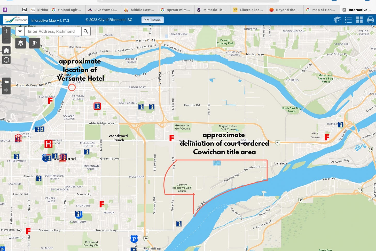 First of all, the Versante Hotel is not anywhere near the area designated by the Cowichan ruling as having Aboriginal title. It would have taken a few minutes for anyone screaming about the Cowichan ruling affecting the sale of the Versante Hotel to work that one out. Why didn’t anyone think to mention this in Xwitter their outrage and fear-based rant jags? Oh, right, outrage and fear are their own drug and we can’t interrupt the junkies getting their fix, can we?