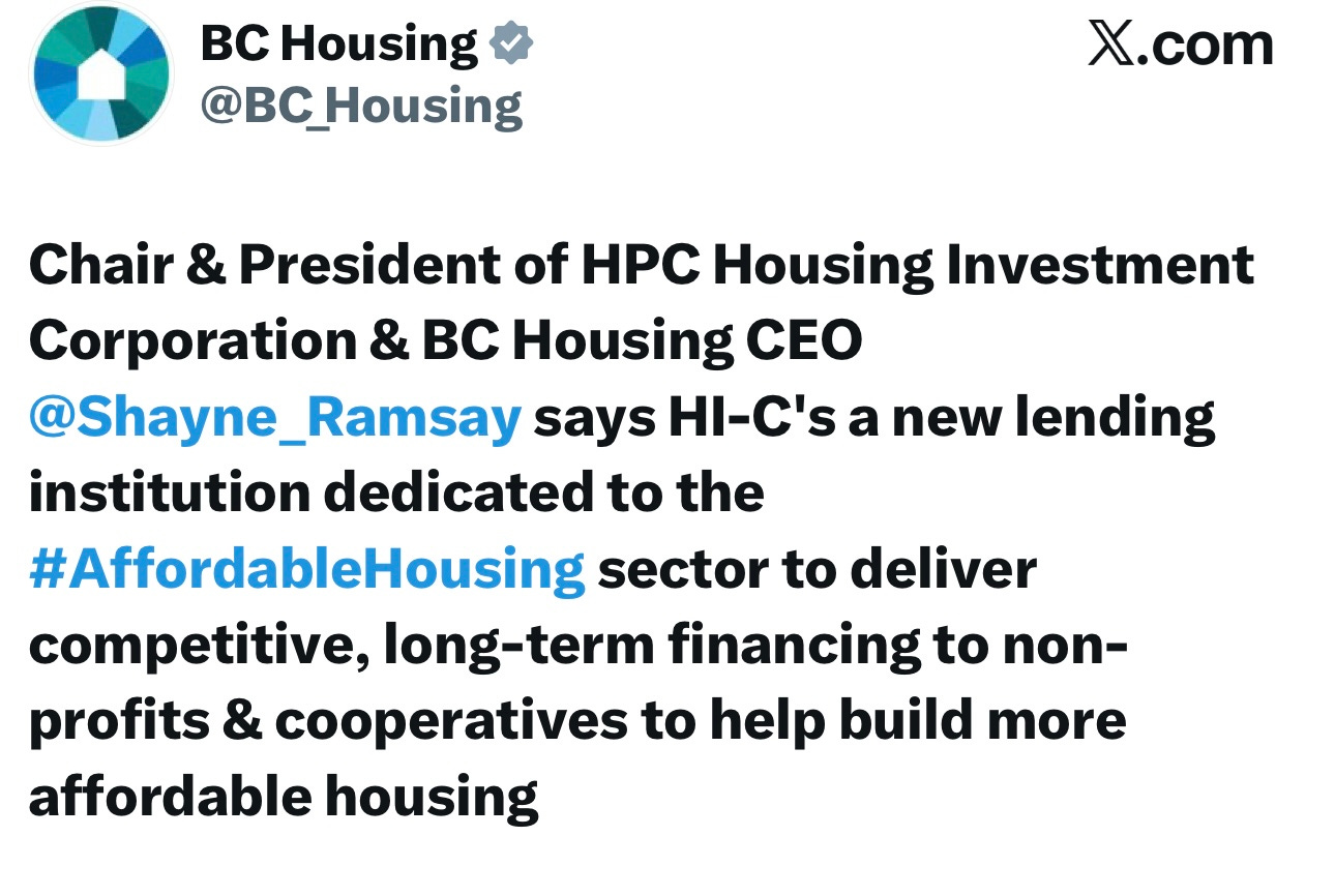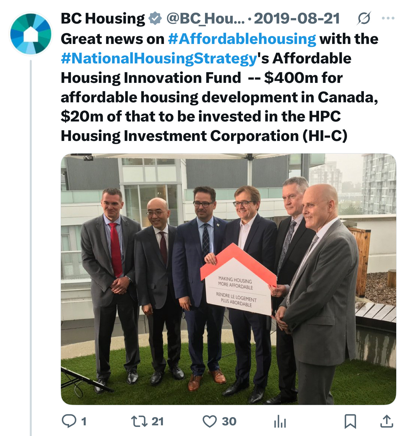 Ramsay, in his capacity as CEO of BC Housing, invested public funds in HPC Housing Investment Corporation (HIC), a federally incorporated private lending company founded jointly in 2018 by BC Housing, Manitoba Housing, and Housing Services Corporation of Ontario, with support from the federal government via CMHC’s Affordable Housing Innovation Fund.