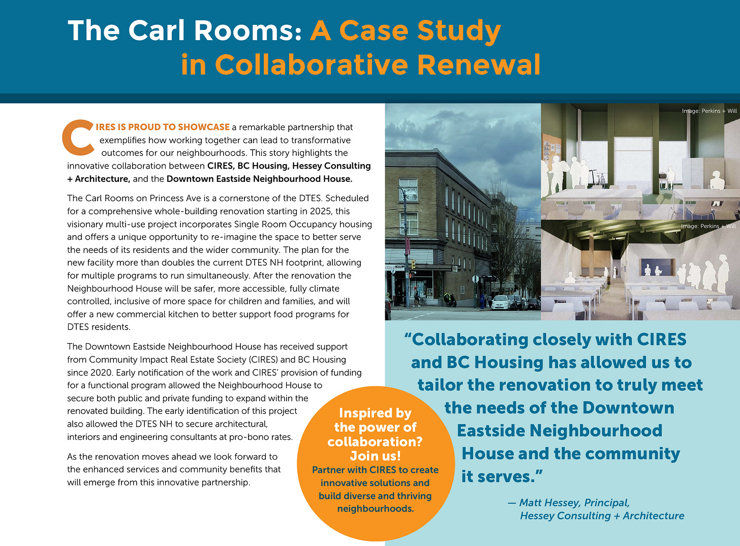 CIRES operates as a non profit social enterprise curating commercial real estate spaces for social enterprises. It operates 53 units across 29 buildings in Vancouver’s inner city, ie DTES.