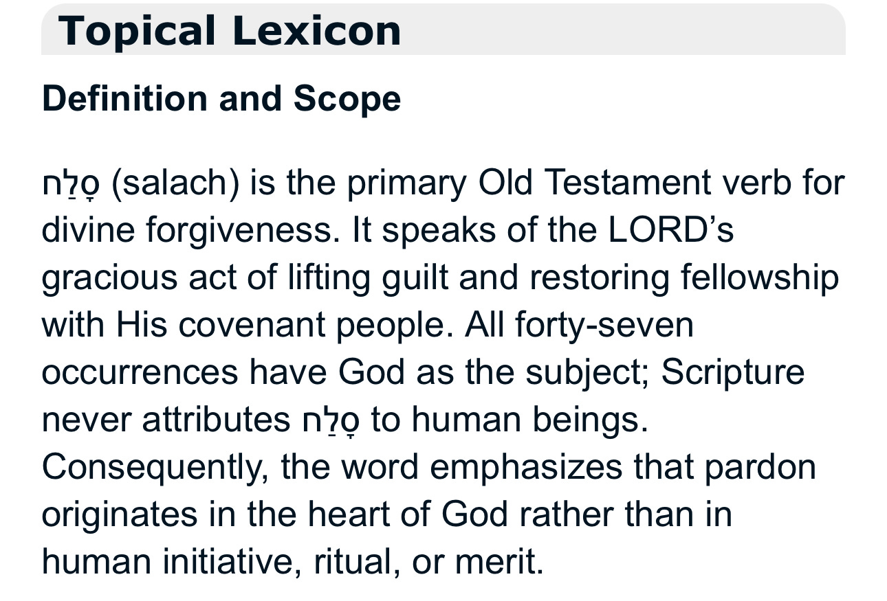 Forgiveness comes from G-d, that’s salach סלח, it originates in His heart. We could imagine that mercy lines the heart of g-d, and that grace flows to us from the chambers of g-d’s heart through Jesus.