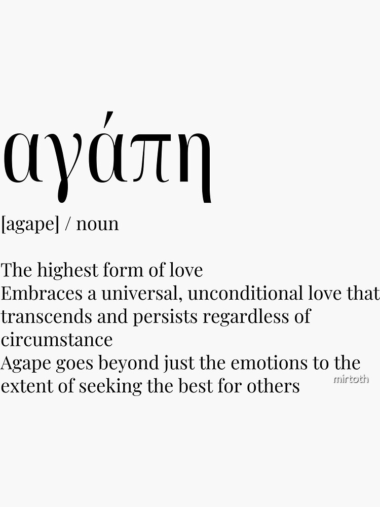 When we speak of Love in Christianity, we mean the Greek word, agape. Agape implies volition, not mere sentiment. Agape means service, action, and self sacrifice. We can never forget that Love motivated G-d to give His precious gift to us, as per John 3:16, for God so loved the world that he gave his one and only Son,that whoever believes in him shall not perish but have eternal life.