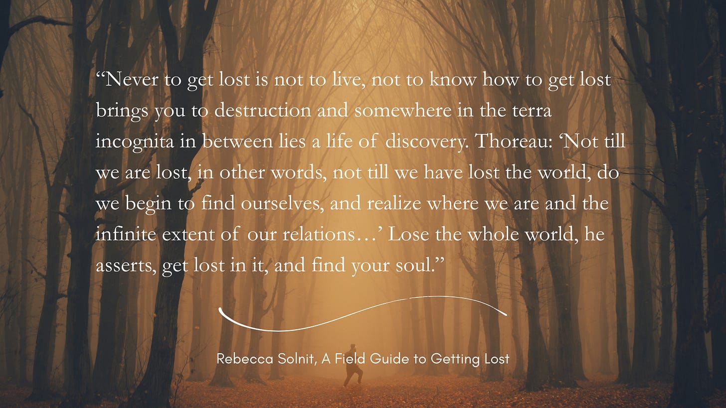 In fact, to a large degree I lost faith for a block of time. I went through a period of disconnect in which I couldn’t pray. I felt lost in a void. Rebecca Solnit wrote a whole book, A Field Guide to Getting Lost, about the birth of discovery from the experience of getting lost. When we acknowledge our ignorance and ineptitude, and embrace our teachability, our willingness to live inside the uncertainty of the world and humanity and the heavens and g-d, then we open ourselves to finding the hidden treasure we didn’t even know existed. G-d eludes us, He defies our crude attempts to capture Him and place Him in the certitude box. So too, with the Bible.
