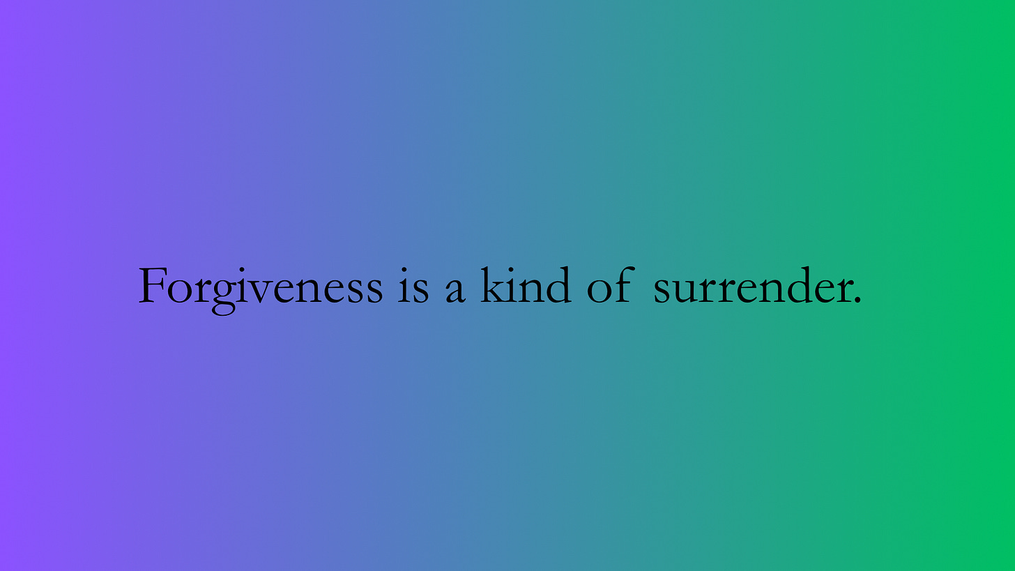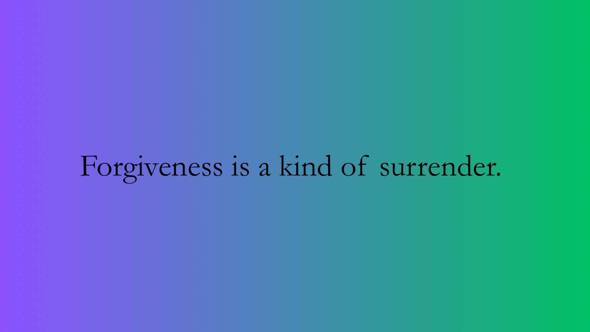 The etymology tells us that forgiveness involves releasing the need to punish another for an offense or a trespass. Forgiveness, then, becomes a kind of surrender we engage.