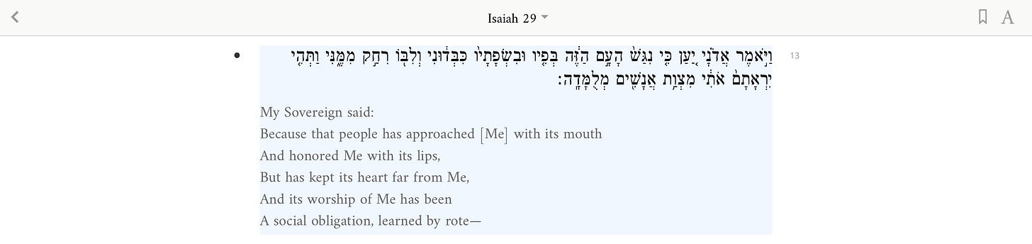 Okay, now I think we’re ready to consult the Jewish commentary on Isaiah 29:13-14 to flesh our understanding of this passage. Note to readers—I have taken these commentaries from Sefaria, my go-to for Jewish texts and commentary.