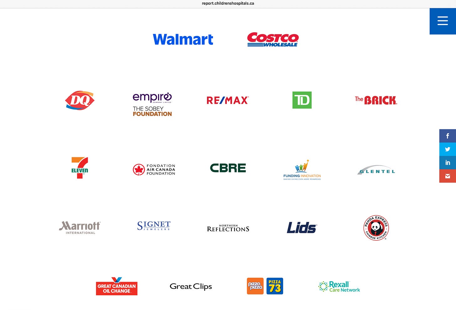 Patrons of the CHC include the Alberta Children’s Hospital Foundation, the BC Children’s Hospital Foundation, the Canada Children’s Hospital Foundation (CCHF), the CHEO Foundation, Children’s Health Foundation, The Children’s Hospital Foundation of Manitoba, the IWK Foundation, McMaster’s Children’s Hospital Foundation, Sick Kids, Stollery Children’s Hospital Foundation, Trillium Health Partners Foundation.