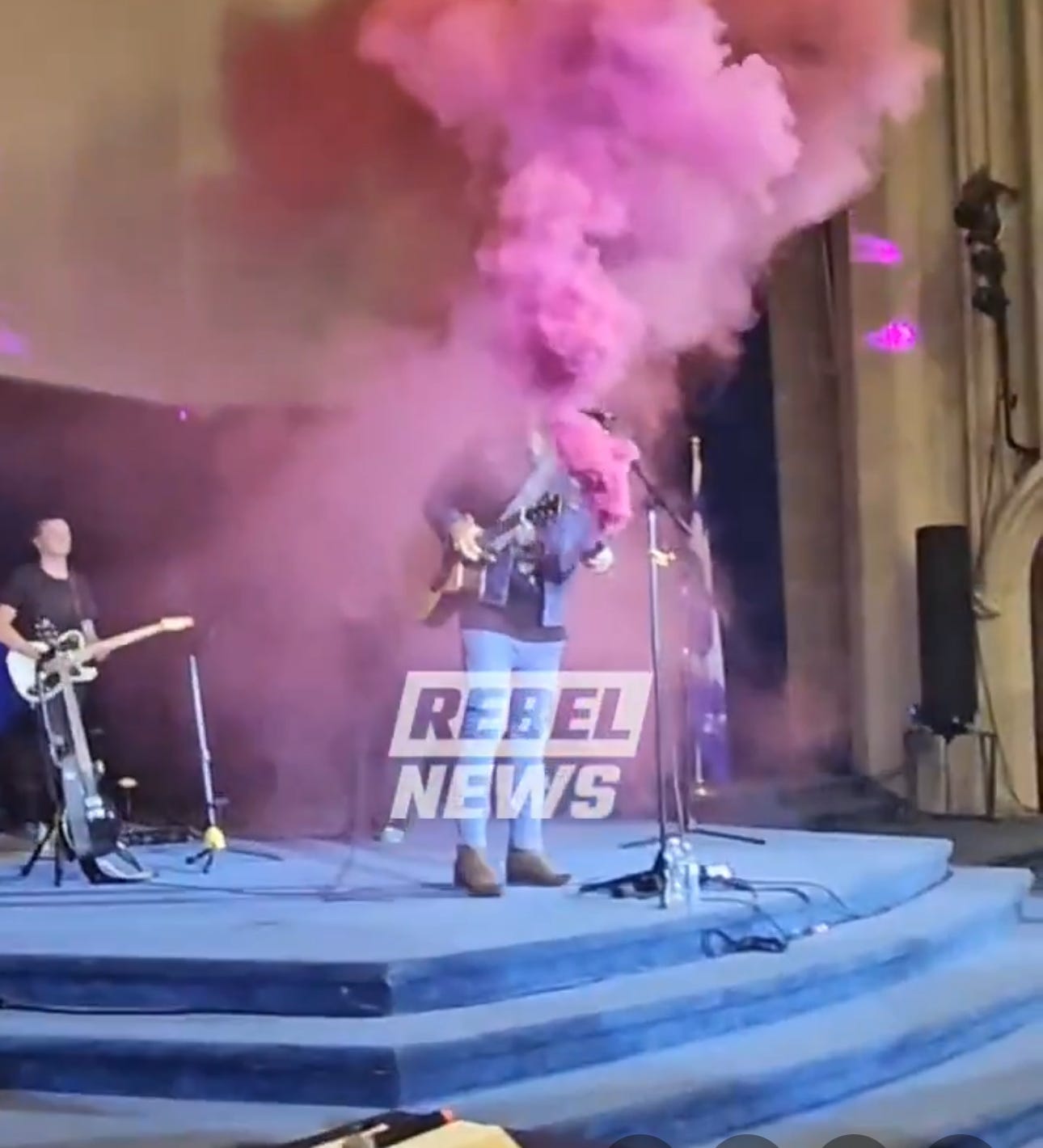 Last night Feucht lead a worship service at Montreal church Ministerios Restauración Elise MR and the Montreal mayor tried to shut it down saying the church needed a permit. She sent the police. Anarchists showed up. Pro Hamas people showed up. They blocked the church entrance. The cops let them. One thug entered the church and threw a smoke bomb at Feucht, narrowly missing his head. Rebel News indicates that the Montreal have opened an investigation. The city has fined the Ministerios Restauración Elise MR $2,500 for going ahead with the concert, according to the CBC.