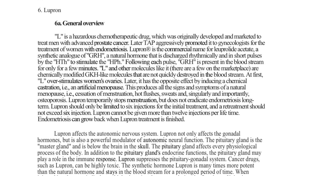 “Lupron is a powerful modulator of autonomic neural function.”