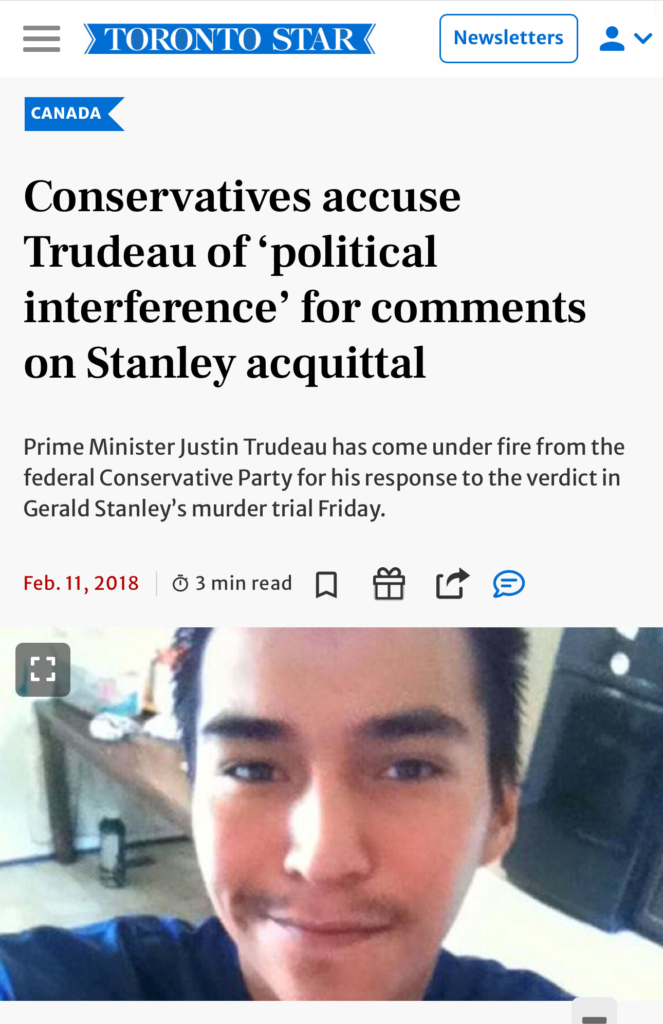 “Saying anything that amounts to commenting on the correctness of the verdict, to improve your public image or ensure an appropriate approval rating, should be criticized in Canada,” Lacy said, adding public figures should stick to offering sympathies over the tragic loss of life.” — Toronto Star, 2018