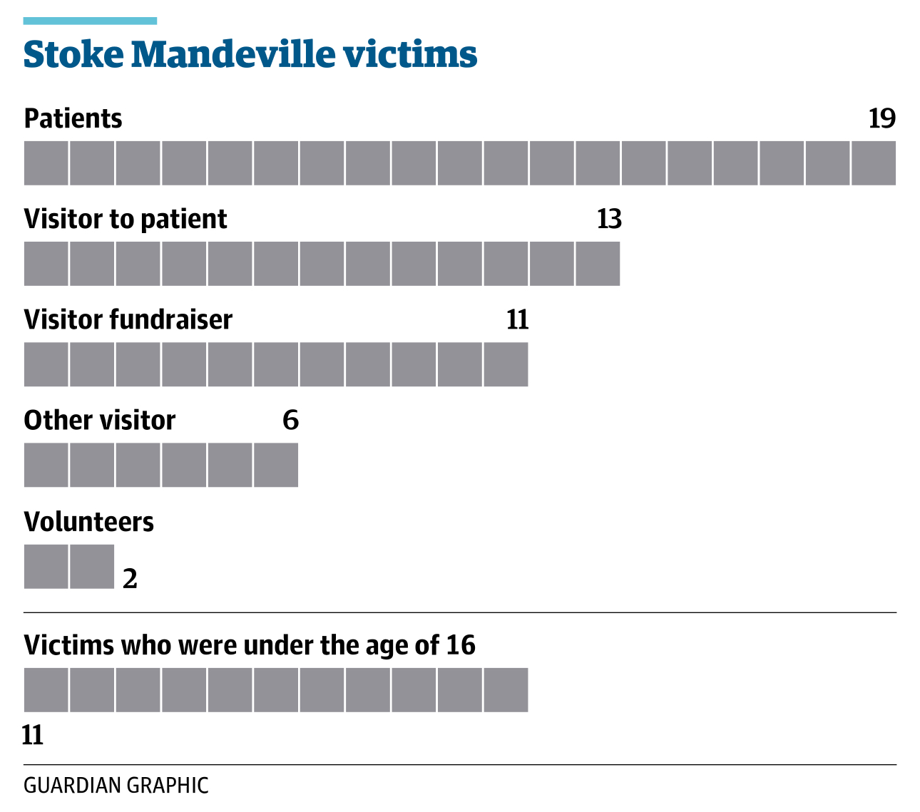 Victims who suffered abuse at Stoke Mandeville include a young girl of age 8 or 9, whom Savile raped on 10 different occasions.