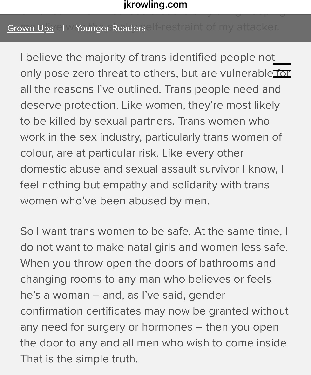 Why did Mr. Digby feel the need to demand the Park Board apologise to the “gender diverse community”? Well, because JK Rowling once said sex is real and gender extremism harms women. She wrote a very reasonable letter and the Wokifada lost its sh1t.