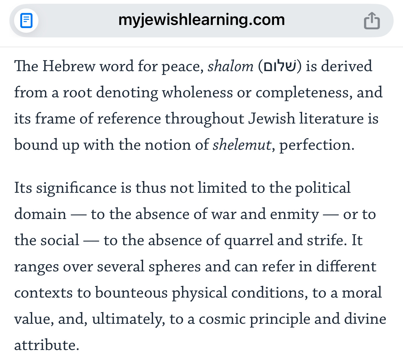 We can envision peace as G-d, humanity, and all creation united in fullness through the light. Jesus came to restore shalom.