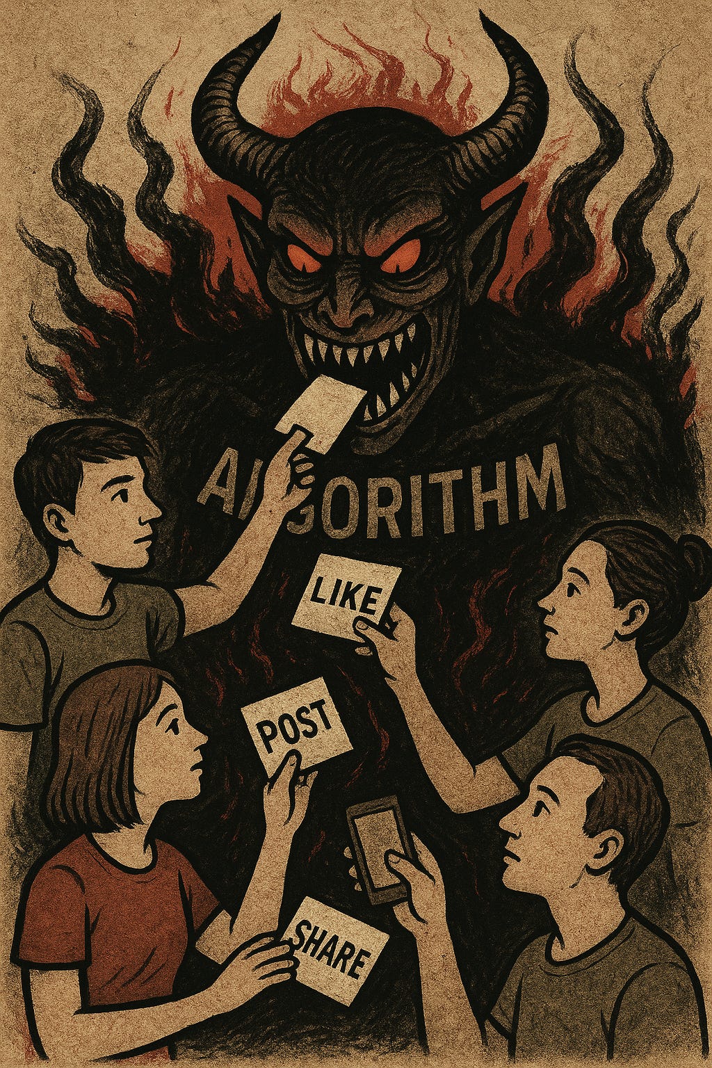 It’s a kind of pseudo agency at play, when it comes to algorithms. When we feed on the rage-baiting and fear-mongering information on Xwitter, we boost that toxicity far and wide. Do we consider how this harms vulnerable and weak people? Do we consider the ways we enable evil and create energy for evil through the ways we feed on information via social media? How do we energising the thing we think we are opposing? Thinking too much of evil. Thinking too little of evil. In both cases, we end up energising evil, enslaving ourselves in sin. Do the sins we commit work against others? Do sins others commit work against us? Social media provides the opportunity for a convergence of some of the most poisonous political ideologies and cultural forces into frightening and dystopian identities that have taken on a demonic life our their own.