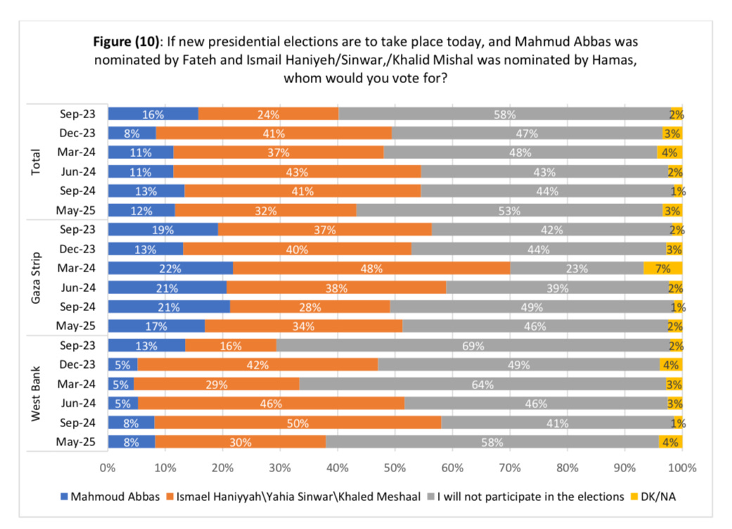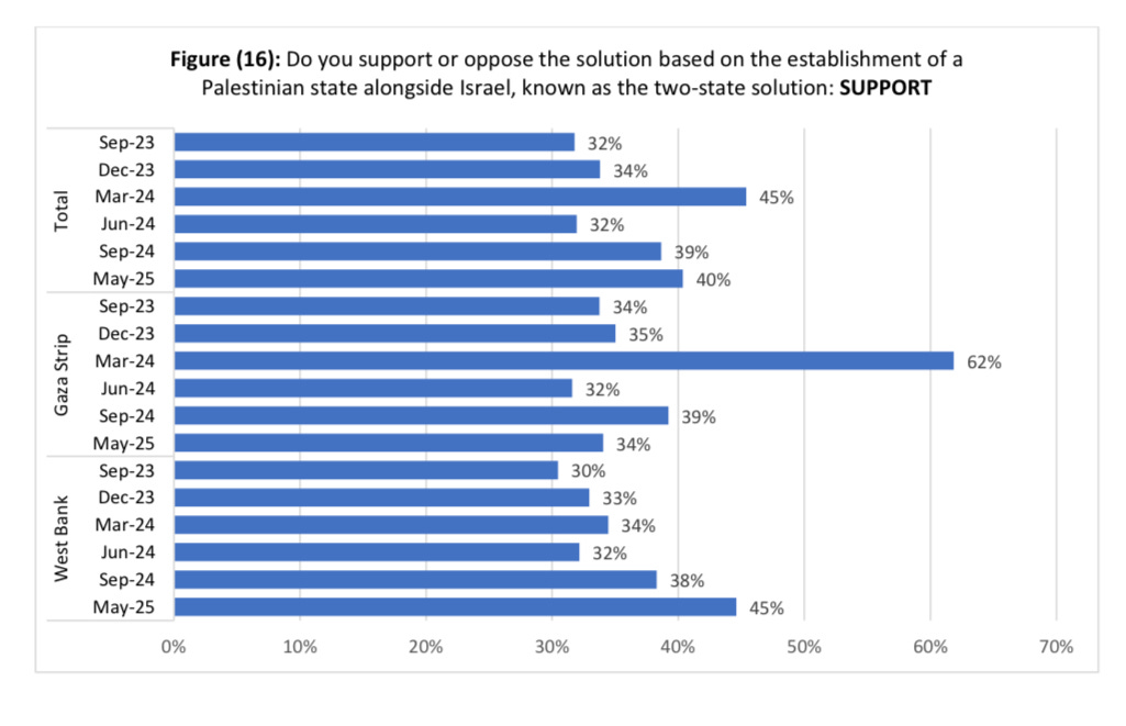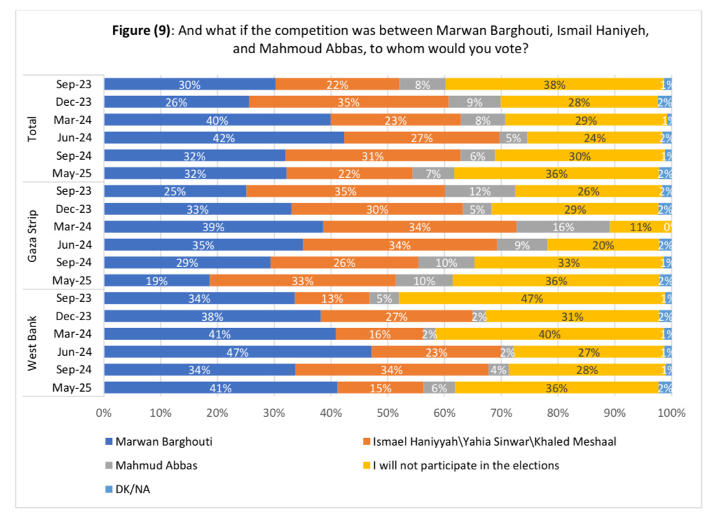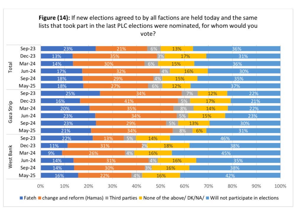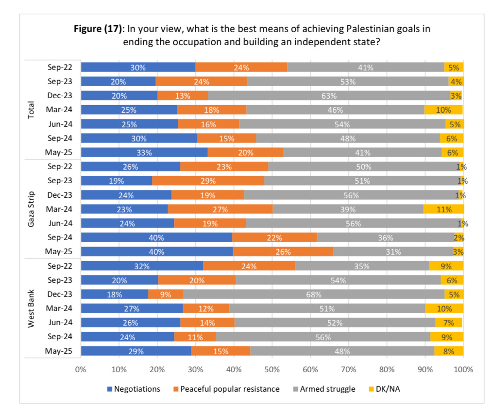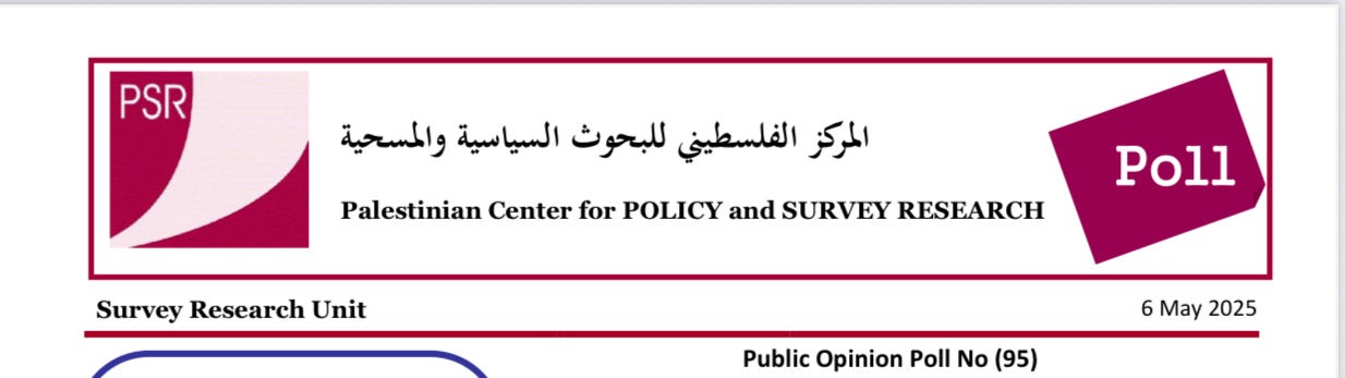 Note: My source for this article is a survey conducted in May 2025, it’s the most recent survey conducted by the Palestinian Centre for Policy and Survey Research.