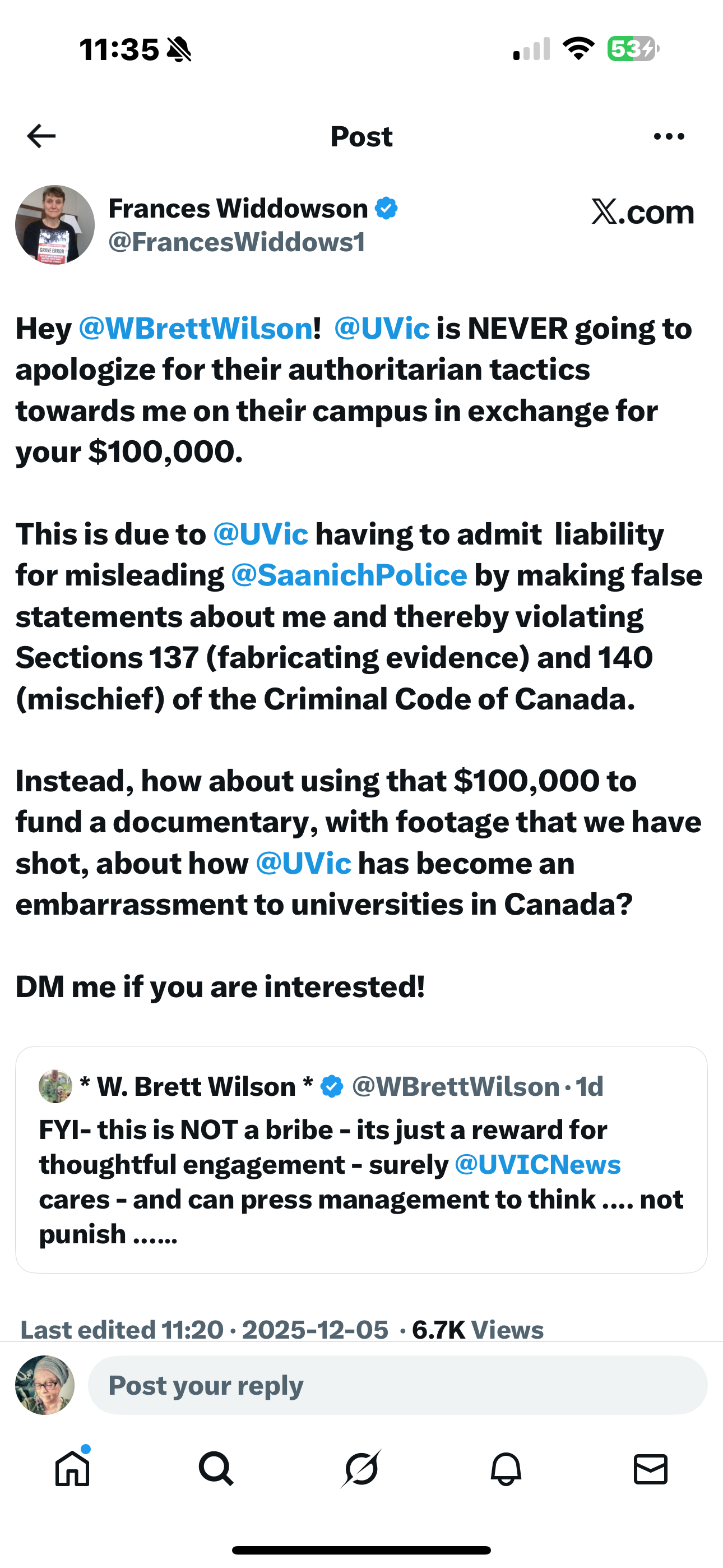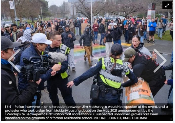 I think it’s weak and pathetic and disingenuous for Robina Thomas and the UVic administration to hide behind the counter protest, which featured celebrities such as Logan Staats and Tanya Tagaq.