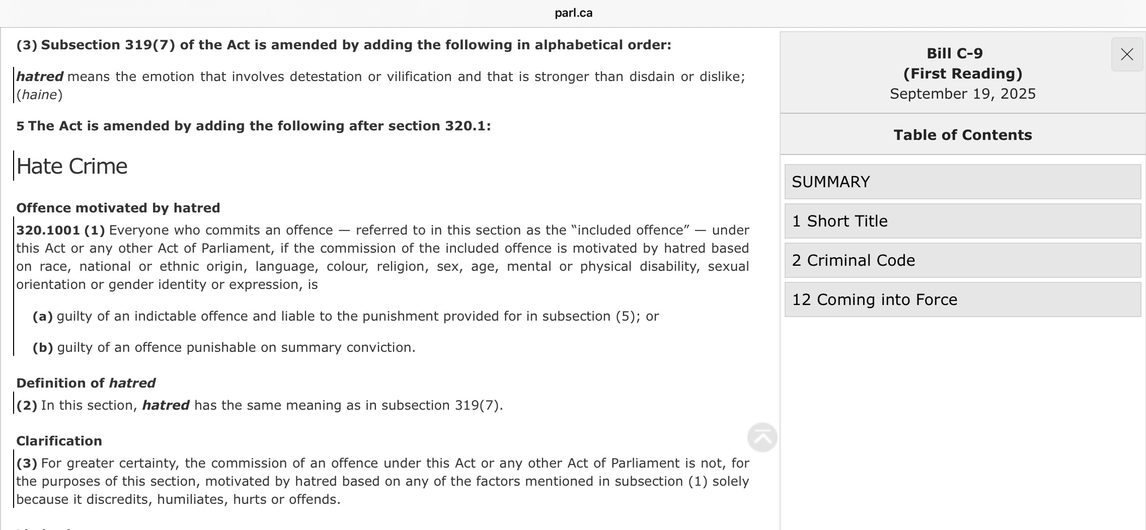 What is hate? Why does Canada criminalise it? The current version of the criminal code fails to define hate in a fashion that could render the law useful. It really leaves a great deal up to the judiciary, as far as interpretation of the hate law and its application to a situation. Do we want to give that kind of power over humans to anyone? Why do we want to give that kind of power over humans to anyone? Humans lack the trustworthiness and ethical responsibility and intellectual skill to wield such power over each other. Definitely the Canadian Crown Counsels and judiciary have demonstrated their untrustworthiness in this regard, owing to their vulnerability to ideological capture of the institutions in which they work.